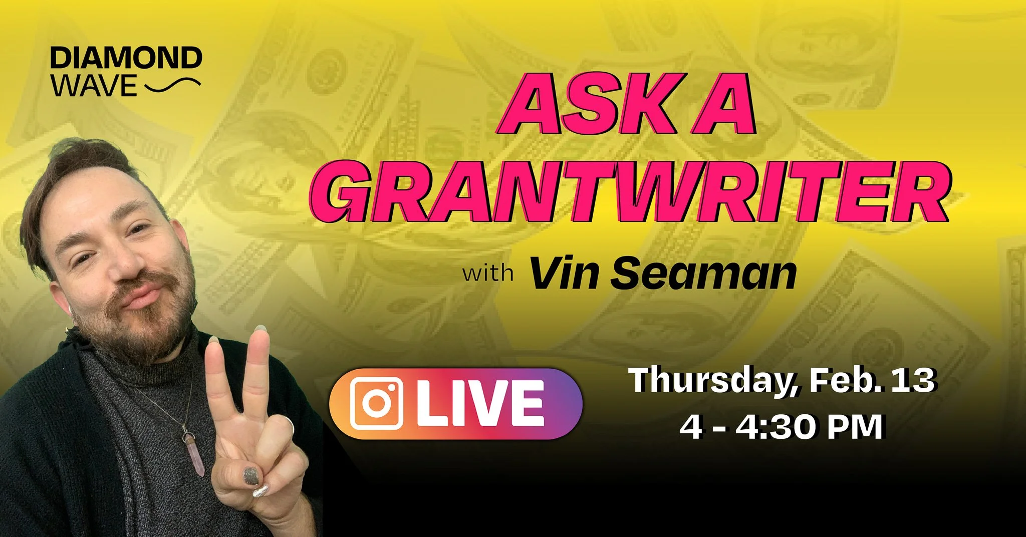 Grants expert and Diamond Wave director Vin Seaman will be answering all your questions about grants and sharing valuable insights into creative funding 👀 💸