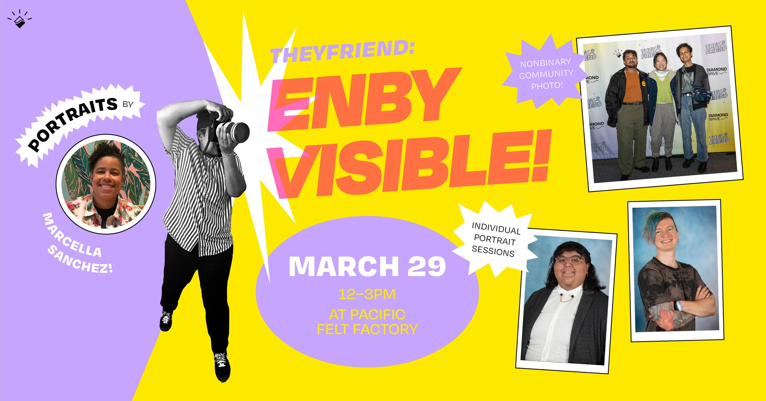 Join the THEYFRIEND Nonbinary Performance Festival and local queer photographer Marcella Sanchez at Pacific Felt Factory on Saturday, March 29, 12 - 3 PM. We’re offering FREE portraits for nonbinary performers and we’ll be joining together to take a nonbinary community photo that will be shared on Diamond Wave’s social media channels for Trans Day of Visibility (March 31, 2025).