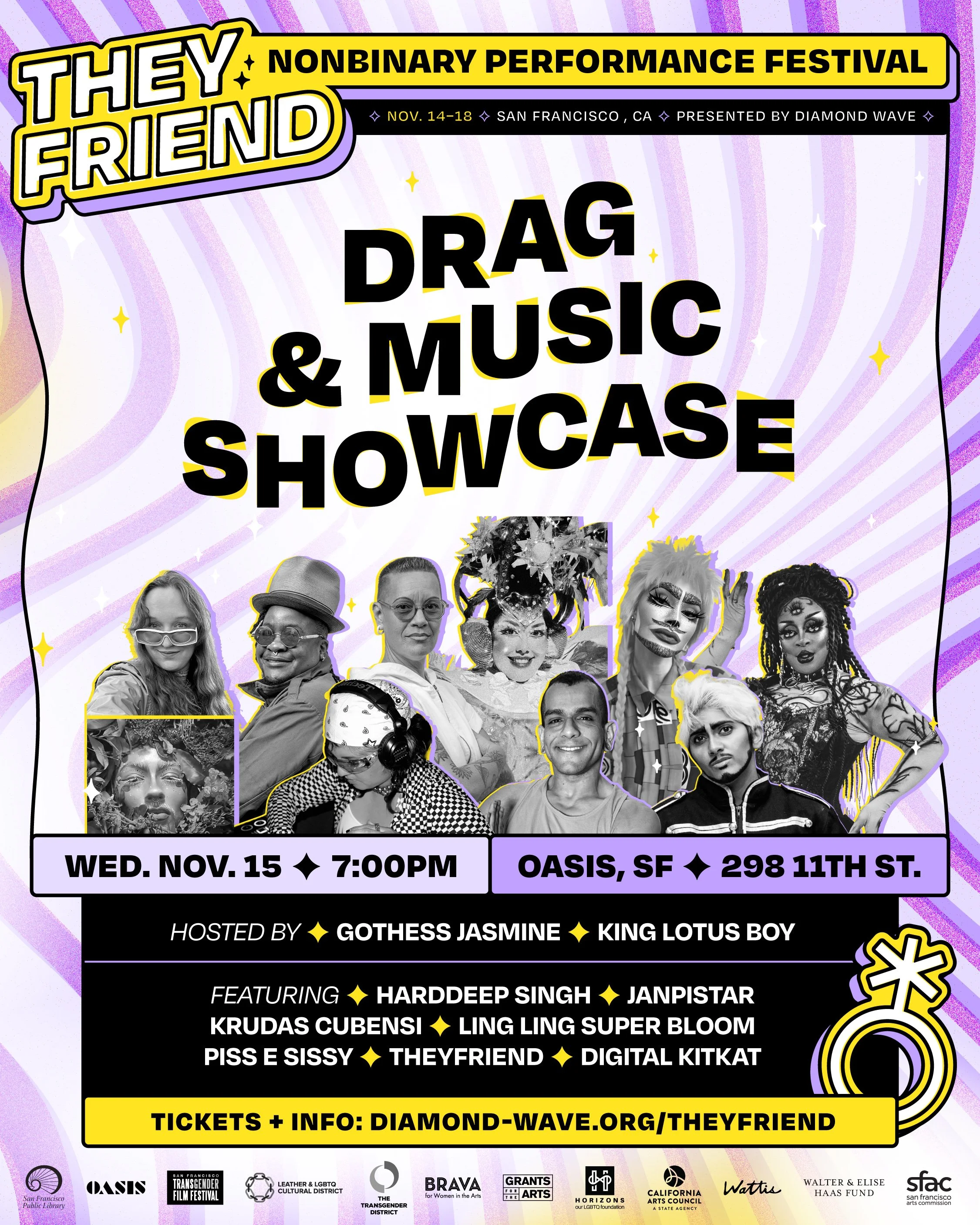 THEYFRIEND is the world’s first performance festival uplifting, centering, and celebrating nonbinary identity! For its third year, we hosted five events from November 14–18, 2023 in partnership with San Francisco presenters, nightlife venues, and community organizations.